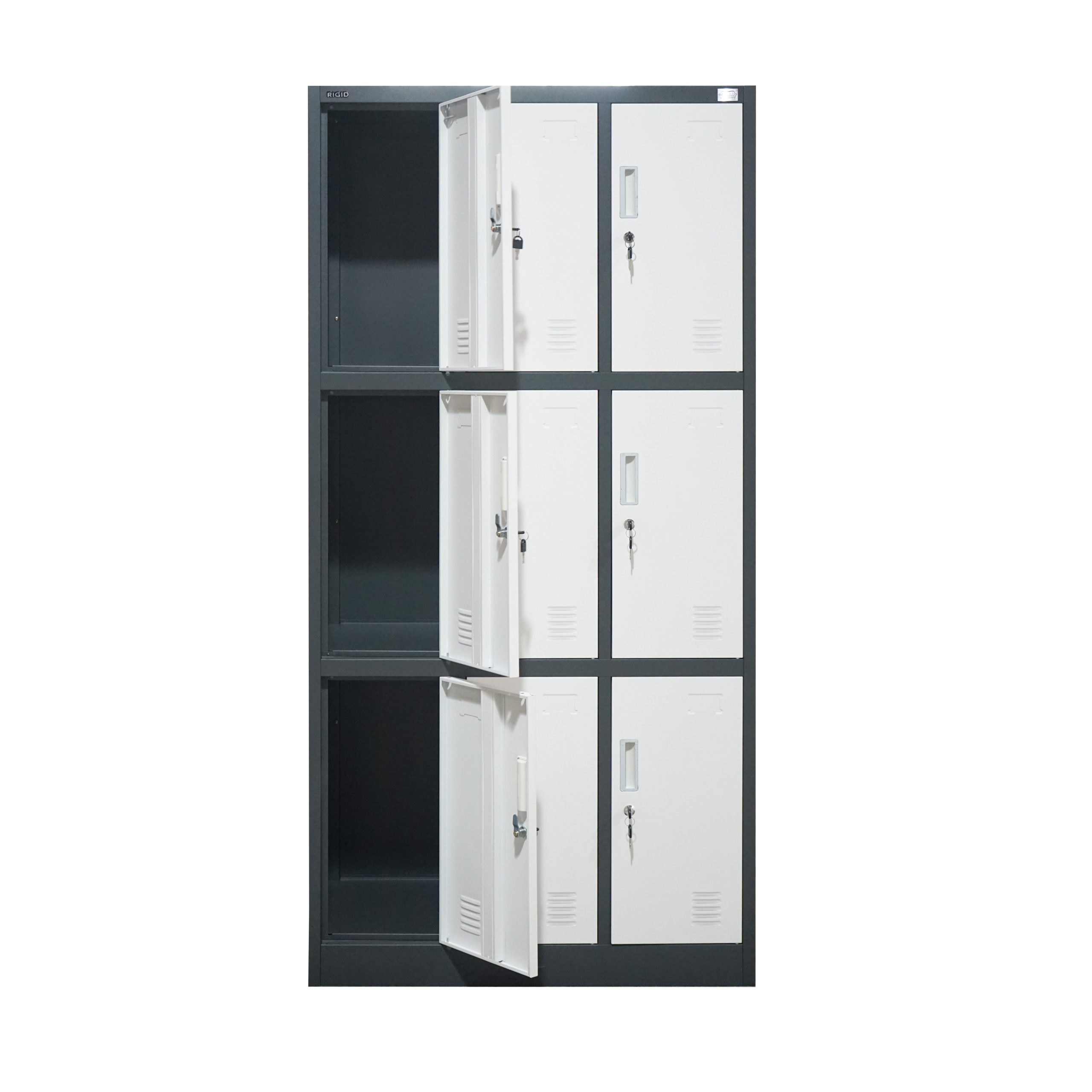 ● Delicate air vent design 9 door uniform lockers, beautiful and elegant, keeping air circulation in the steel lockers.